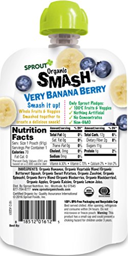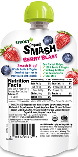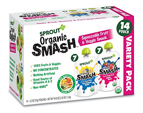Sprout Organic SMASH, Organic Fruit Snack Pouches, Fruit and Vegetable Puree Variety Pack, 3.2 Ounce