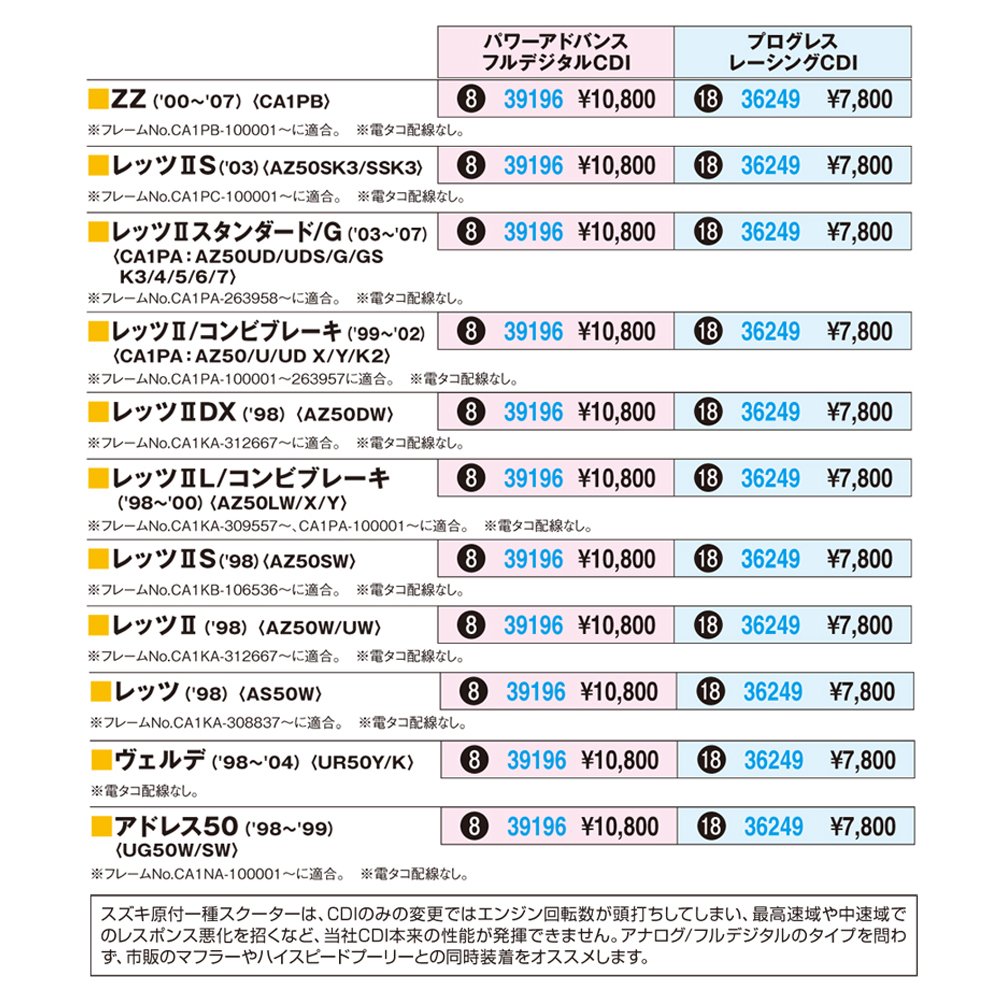 ● Suzuki Motorized Scooter can not demonstrate the original performance of CDI, such as engine speed reversed only by changing CDI, leading to poor response at medium speed or highest speed range.