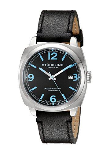 -. Binding : Watch -. Brand : Stuhrling Original -. Color : black -. Department : mens -. EAN : 0847988025089 -. Feature : Brush finish stainless steel tonneau shaped case with round polished bezel / Protective Krysterna crystal on front and decorated case back / Black dial with blue Arabic numerals and markers with date window / Black matte finish genuine leather strap with stainless steel buckle / Water resistant to 330 feet (100 M): suitable for snorkeling, as well as swimming, but not diving -. IsAdultProduct : 0 -. Label : Stuhrling Original -. Manufacturer : Stuhrling Original -. Model : 451.331551 -. MPN : 451.331551 -. PackageQuantity : 1 -. PartNumber : 451.331551 -. ProductGroup : Watch -. ProductTypeName : WATCH -. Publisher : Stuhrling Original -. ReleaseDate : 2013-07-01 -. Studio : Stuhrling Original -. Title : Stuhrling Original Men's 451.331551 Leisure Eagle Square Swiss Quartz Date Watch -. UPC : 847988025089