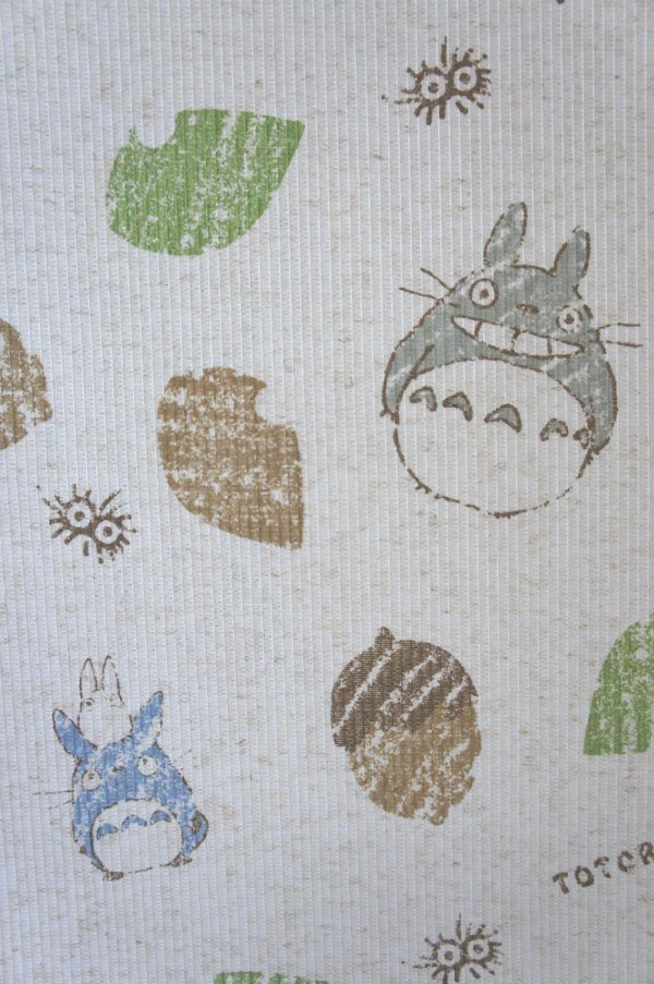 どんぐりに大・中・小トトロにまっくろくろすけが勢ぞろい♪クレヨンで描いたようなかわいいイラストで、季節を問わず楽しめます!のれんとしてはもちろんですが、壁に飾ってポスター感覚で使用してもオシャレです。少々透け感のある生地にプリントをし、お部屋の雰囲気を崩さないような仕上げに致しました。 |