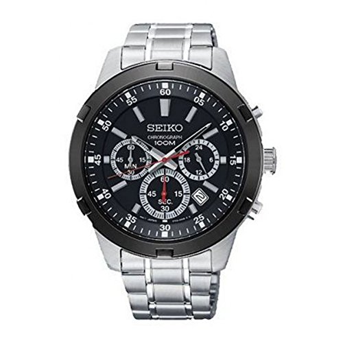 -. Feature : Silver stainless-steel strap / Stainless-steel case, black dial / Quartz movement / Case diameter: 43.6mm / Water resistant: 100m