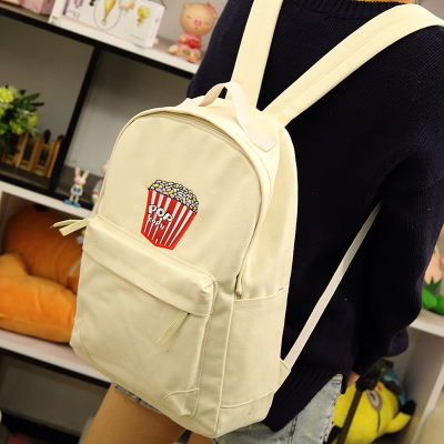 韩版纯色刺绣爆米花帆布双肩包男女大高中学生双肩书包背包潮包