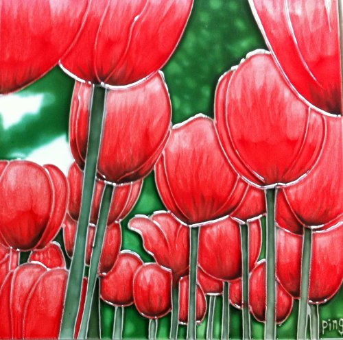 Continental Art Center BD-2076 8 by 8-Inch Red Tullip Field Ceramic Art Tile