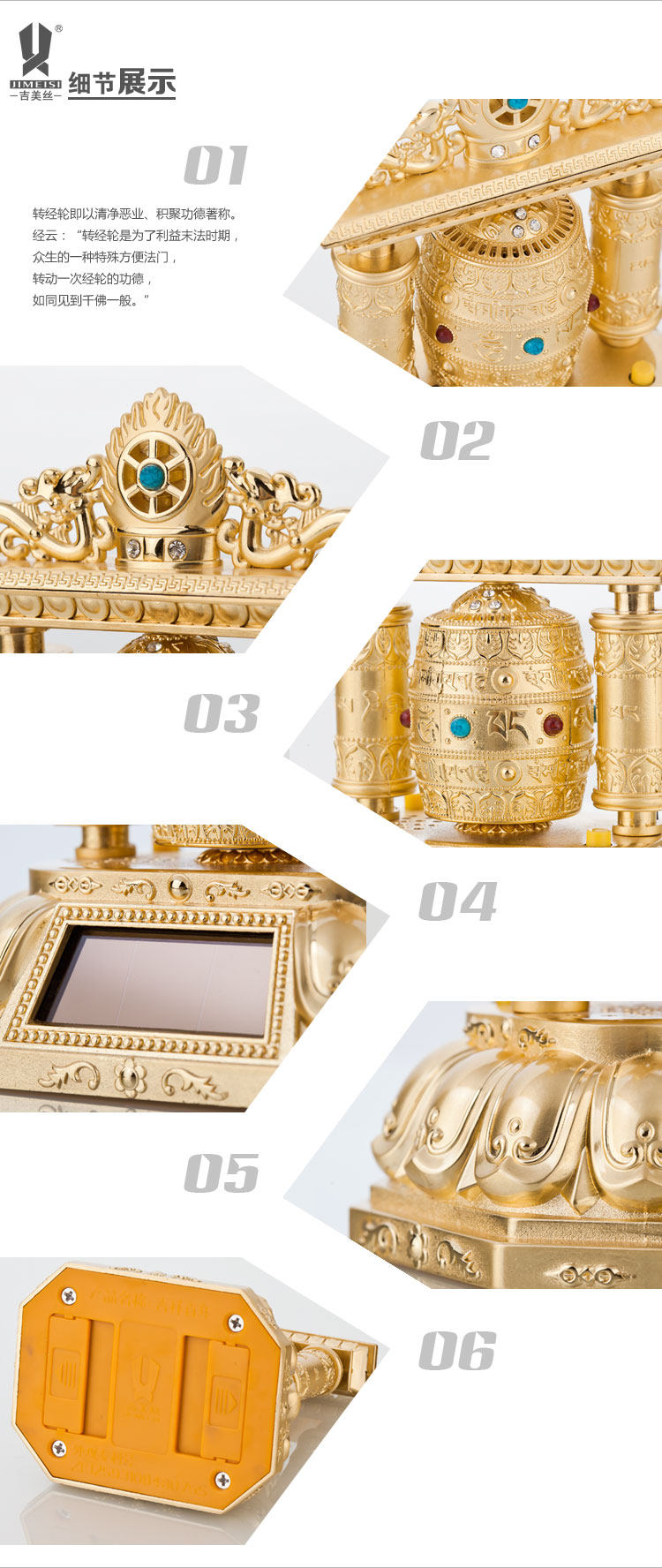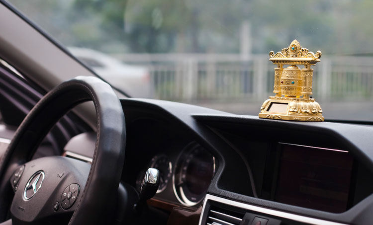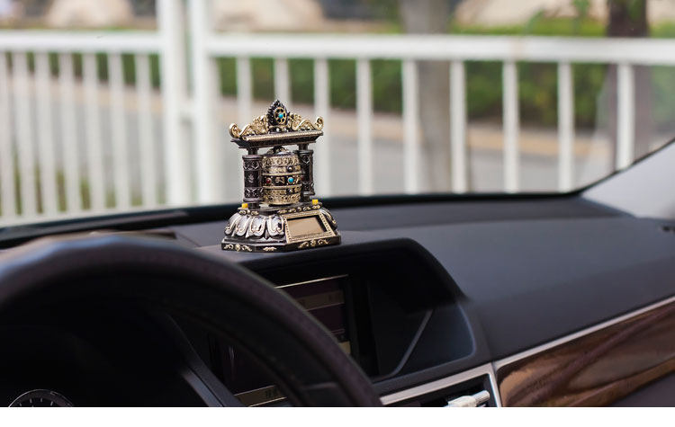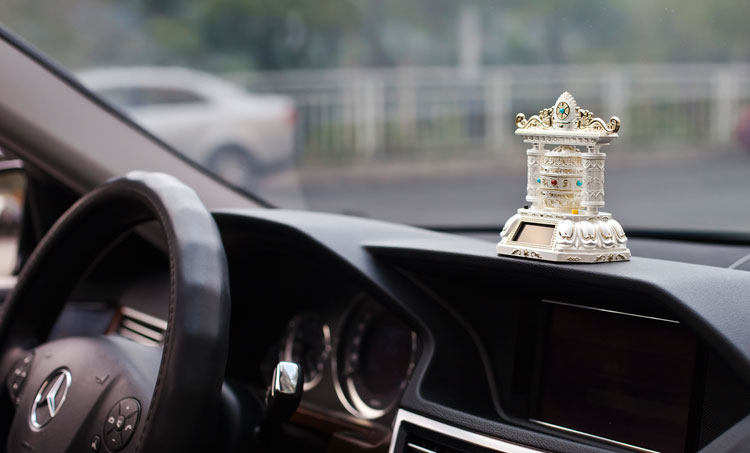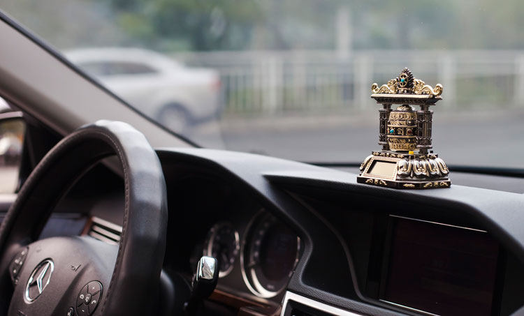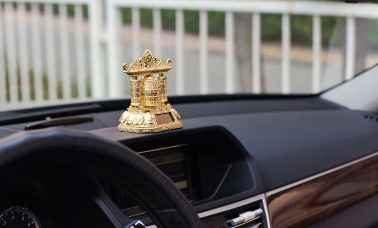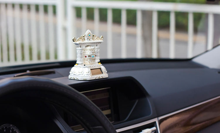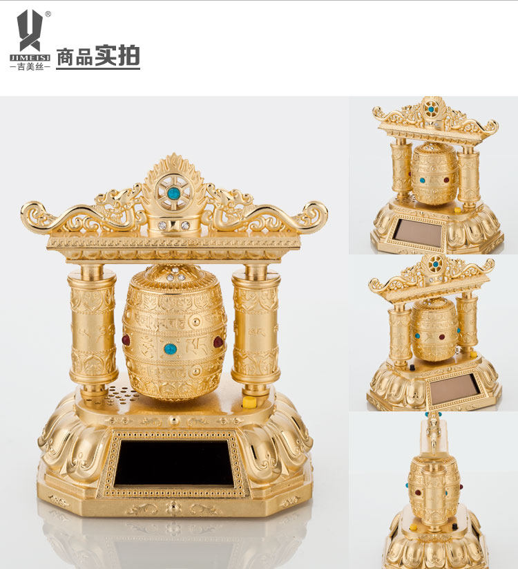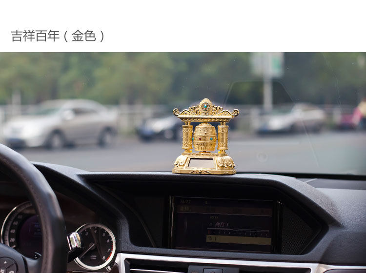 转经轮汽车香水座车载仪表台香水座太阳能带音乐转经筒保平安 高档奢华
