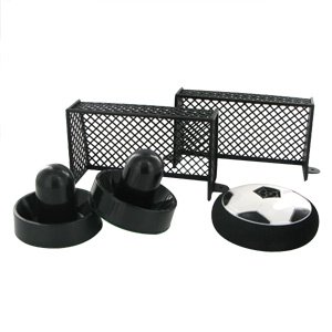 Air hockey fun you can takeanywhereProduct InformationAir Hover Hockey makes it easy to turn any smooth surface into aplaying field for your next Air Hockey tournament.  The smallsized strikers and goals are perfect for travel - designed to bepact this set lets you bring the fun of air hockey with youanywhere.  With this hover hockey ball two strikers and twogoals all you need is a smooth surface as your field and you're readyto play.  With its soccer ball design the Air Hover Hockeyset is the perfect gift for soccer and air hockey fans alike. Product Features Transforms any smooth surface into a game field Power glide with the push of a button Includes hover hockey ball 2 strikers and 2 goals Great for air hockey fans and soccer enthusiastsIncludes Air hover hockey ball 2 strikers 2 goalsSpecifications Color/Design:  Black/Soccer Ball Power Source:  2 'AAA"Batteries (not included)