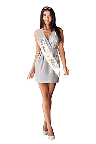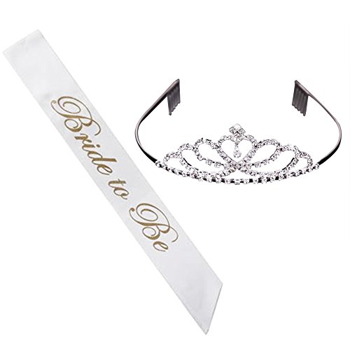Bride to Be Sash and Tiara: Elegant Metal Alloy and Rhinestone Tiara | Stylish White Satin Bride to Be Sash with Gold Lettering | Bachelorette, Bridal, Wedding...