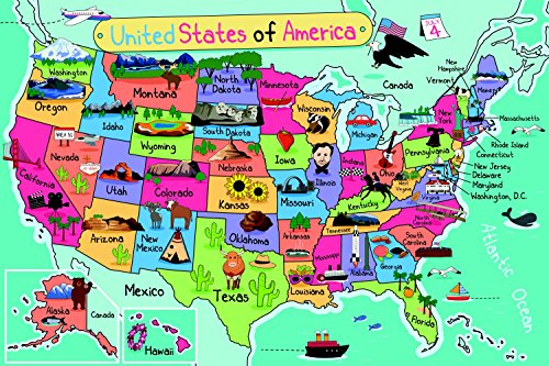Large US Map: Home Decor Poster Wall Art for Kids, Classroom, Playroom, and Cafe 18 x 24