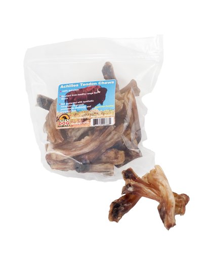 -. Feature : Great Dog's 1.5 Pound Bag of Achilles Tendon Chews are sourced from free-range American grazing bison, never implanted with synthetic or growth promotants / Highly coveted and our number one seller, Bison Achilles Tendon Chews last a good long time and are a fantastic option for the multi-dog family / Bison Achilles Tendon Chews range in size from 3-5" segments making them best for dogs under 55 LBS. / Great Dog Bison Achilles Tendon Chews are a great alternative to rawhide chews / Slow roasted in a federally inspected human grade facility without smokes, soaks, washes, nitrates, sorbates, BHA or BHT