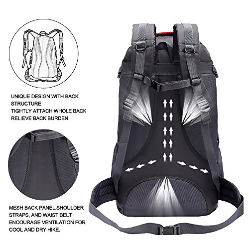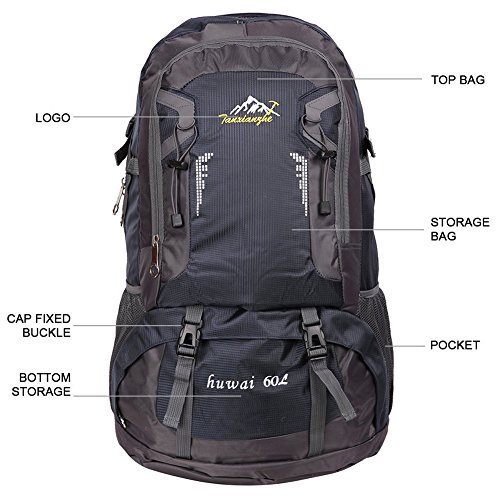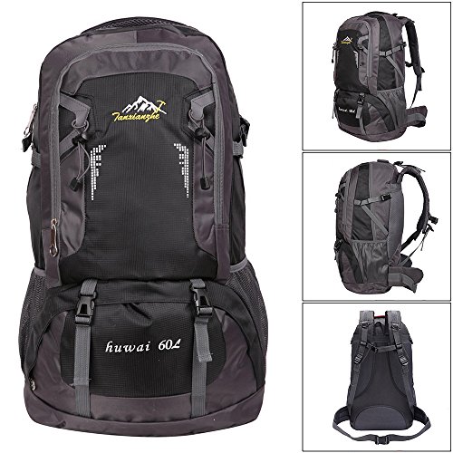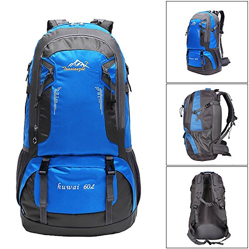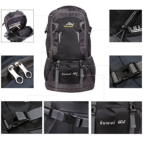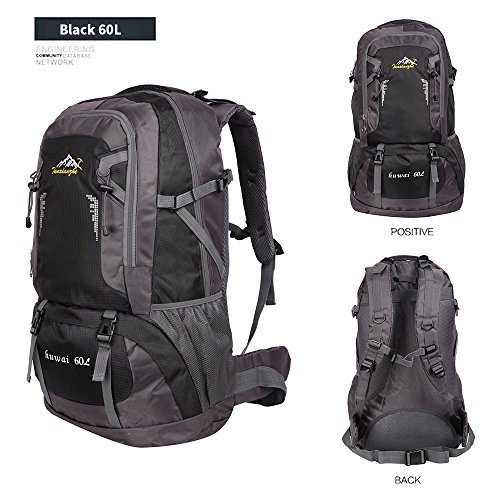 -. Feature : 【MULTIFUNCTION 60L HIKING BACKPACK】With a capacity of 60 liters(3,600 cubic inches); Plenty of pockets can carry your stuffs easily. Prefect for hiking, traveling, camping,climbing , shopping and school,suit for both men & women and great gift for everyone. / 【A RAIN COVER INCLUDED】The travel backpack with a orange rain cover;light, comfortable, and adjustable chest and waist belts; ergonomic padded shoulder straps and waist belt can relieve burdened on the shoulder,quickly relieve pressure on the spine / 【DURABLE & COMFORTABLE】Made of lightweight durable materials.Padded adjustable shoulder straps and mesh ventilation promise an enjoyable carry. / 【60L WATER-RESISTANT BACKPACK】Rip-stop polyester to prevent the water from sipping into the bag; If the heavy rain comes, then rain cover can works. / 【NO RISK PURCHASING】3 years 100% satisfaction warranty guaranteed & easy-to-reach customer service.