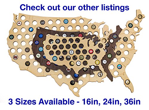 The perfect way for any beer enthusiasts to display their favorite craft beers. This cut out of the USA will delight everyone from the homebrewer aficionado to the Joe down the street drinking a pint in the pub. This craft beer cap map is perfect for a man cave, groomsmen gift, father's day, or birthday. It is made from high quality light 5mm birch plywood with semi gloss finish. Everything is cut with a high precision laser. The holes are the perfect size to hold all of your favorite caps. Just simple push them in from the back and hang on the wall. There are several small holes to make hanging with a finishing nail very easy. AMAZING LIFETIME CUSTOMER SERVICE - You Love Them Or Your Money Back For Life - We Keep Our Promises To Our Customers And Treat You Like Family! PERFECT GIFT: The best gift you can get for a craft beer enthusiast, home brewer, groomsmen, man cave, dad, or grad. 0 |