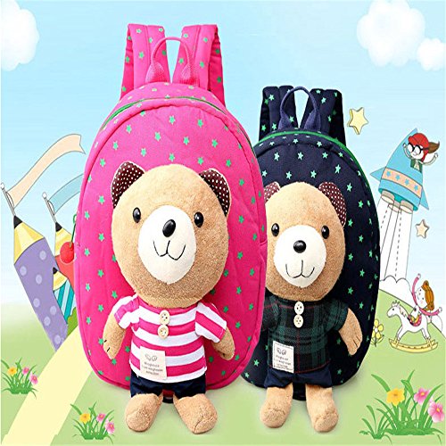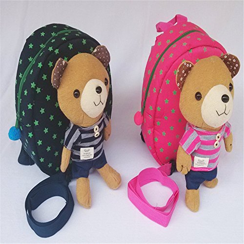 Size: Height 23xLength 22xWidth 9cm ( 9x8.7x 3.5 inches) , recommended ages: 1-4 years. Removable safety harness to keep track of your child. The teddy bear can also be removable to play or wash.