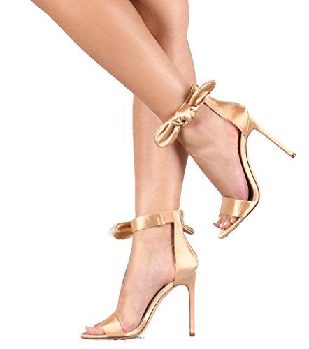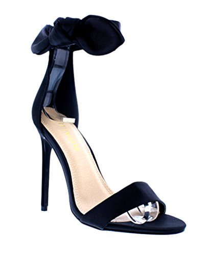 Binding : Apparel Product Description Satin single soles are a perfect match for a dinner night out! Features include, a satin fabric, side bow accent ankle strap, open toe, a back zipper closure, and a cushioned foot bed. Approximately a 5 inch heel. 0