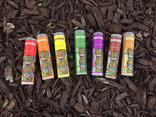 Eco Lips Lip Balm Mongo Kiss 7 Pack - Vanilla Honey, Acai Berry, Peppermint, Pomegranate, Banana, Yumberry, Blood Orange, 100% Organic with...