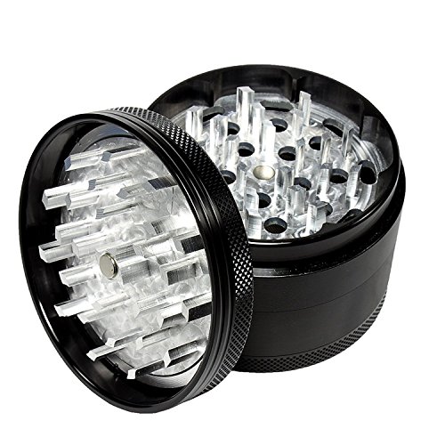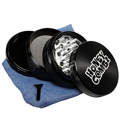HoneyCombz Aluminum 4 Piece Hand Grinder Mill For Fine Coarse Grind Spice Peppers Herbs - 2.5 inch / 63mm - Black