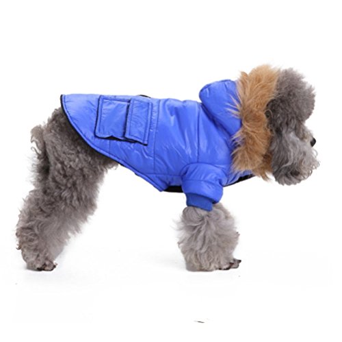 -. Feature : Material: made of good quality and high grade Polyester, warm for your dogs in winter. / Good quality and excellent workmanship, brand new, special design which makes your pets lovely and beautiful. / Your pets would love it and willing to wear it this winter, even won't willing to go outside without it. / Five sizes XS,S,M,L,XL available so you can find a winter coat that suits your dog perfectly. Colors choices: Blue, Pink. / Please check the size details and measure your pets before you buy and use similar clothing to compare with the size.