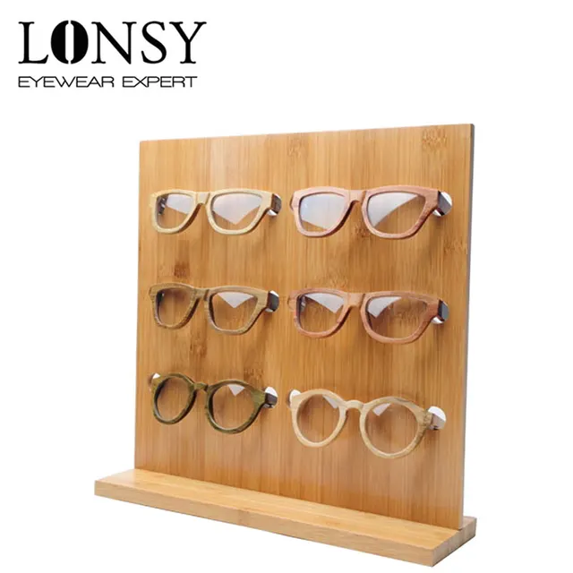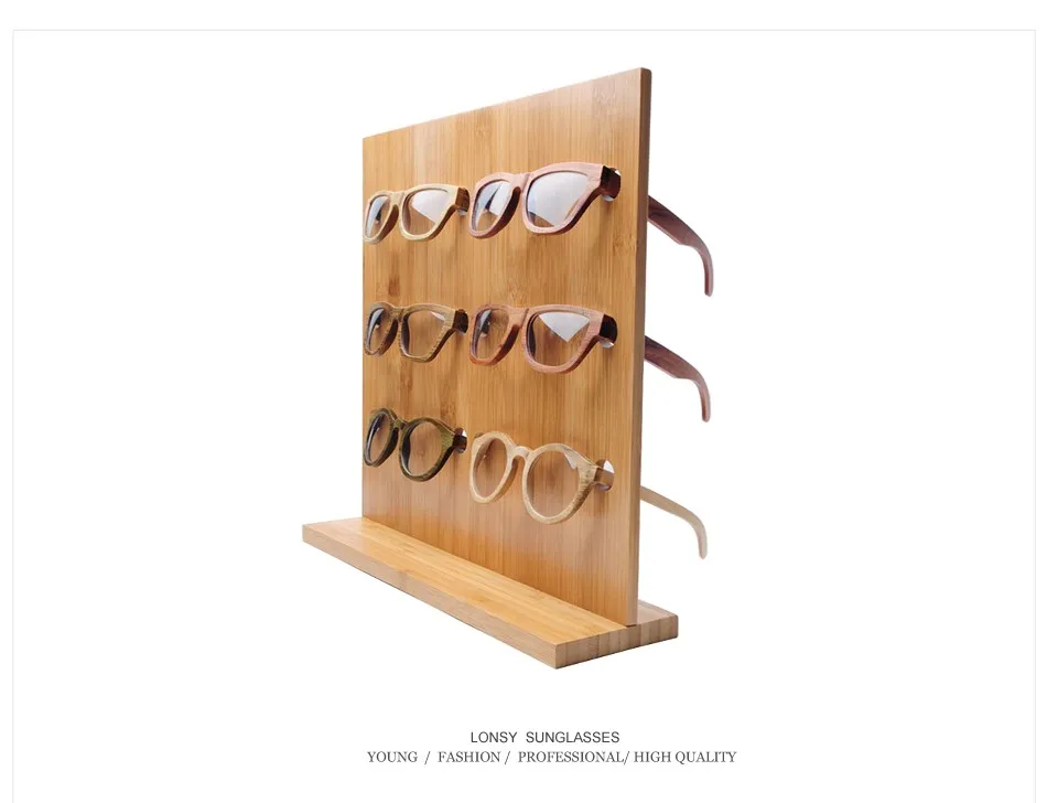 LONSY 2015 패션 대나무 선글라스 랙 안경 디스플레이 스탠드 나무 선반 스탠드 6 쌍 선글라스 DS002