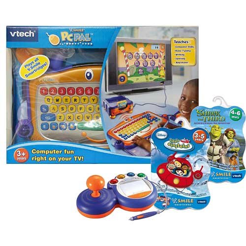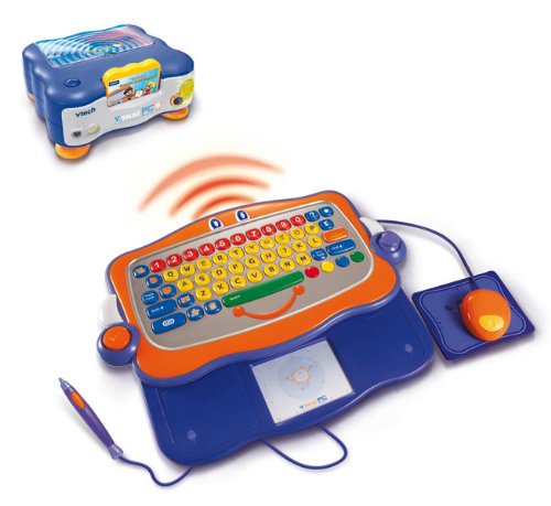 -. Feature : QWERTY keyboard, writing pen, and mouse / Players navigate a kid-friendly desktop environment / Backwards-compatible with all V.Smile Smartridges / v.smile joystick included / 2 extra bonus games included.