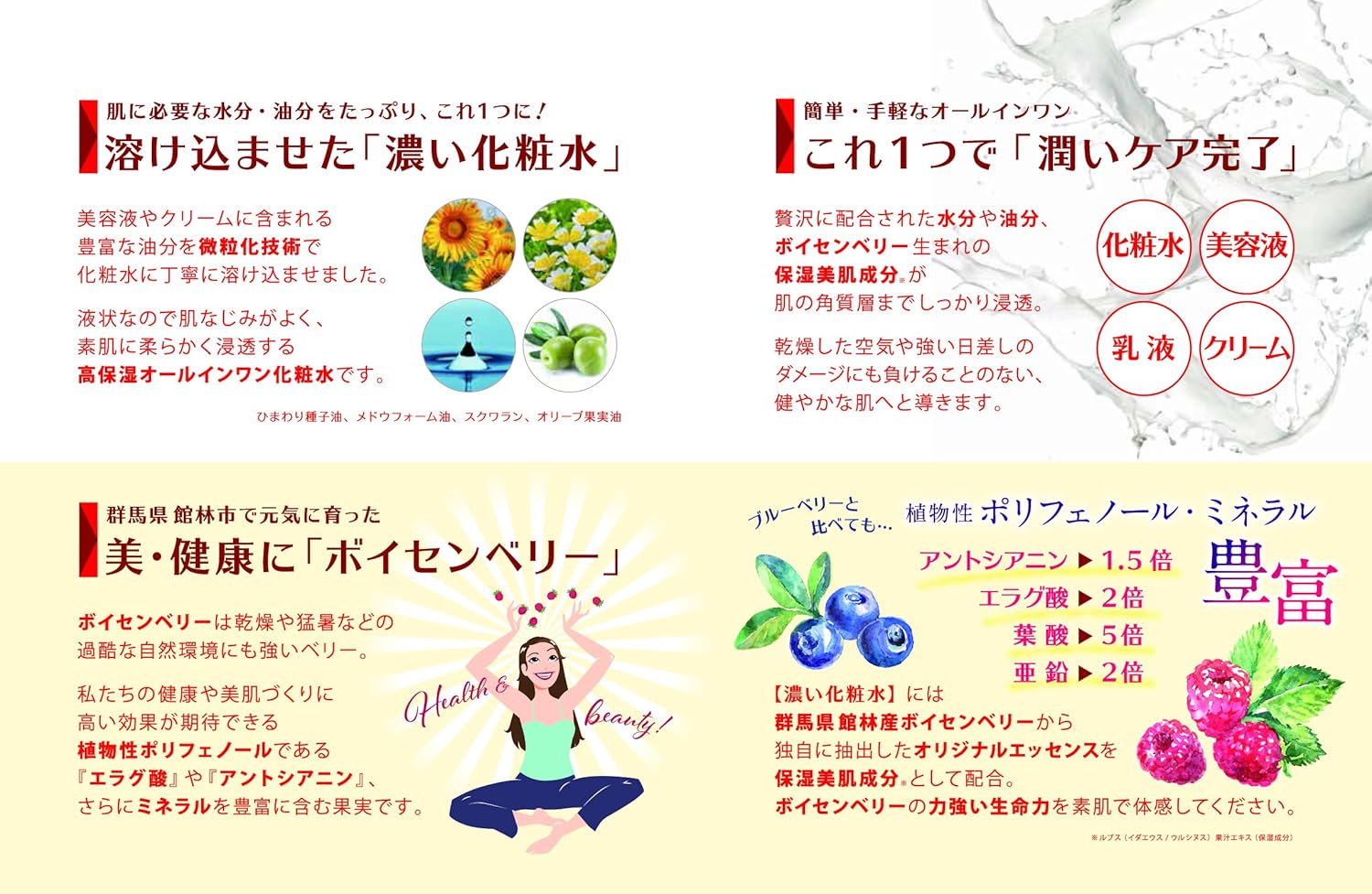 全成分:水、ヒマワリ種子油、プロパンジオール、グリセリン、トレハロース、メドウフォーム油、 ペンチレングリコール、水添レシチン、スクワラン、オリーブ果実油、ジグリセリン、 ルブス(イダエウス/ウルシヌス)果汁エキス、チョウジエキス、カワラヨモギ花エキス、 ジラウロイルグルタミン酸リシンNa、トコフェロール、BG、カプリル酸グリセリル、クエン酸、 エチドロン酸4Na、フェノキシエタノール