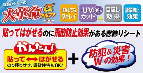 | 貼ってはがせる、飛散防止効果のある窓飾りシート! |