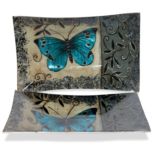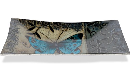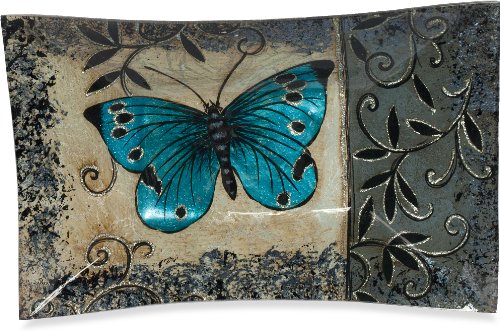 Angelstar 19051 Handmade and Hand-Painted Glass Blue Butterfly Rectangular Plate, 12-Inch