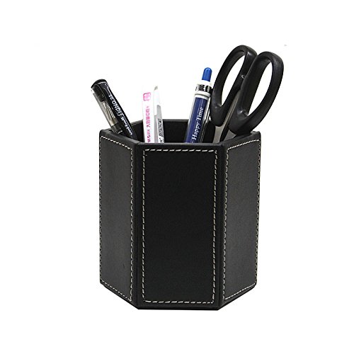 Leather Desktop Pen case Personality Office Storage Box Pencil Holders Black