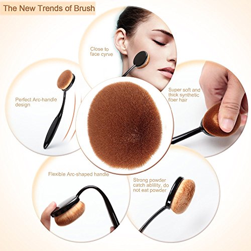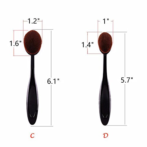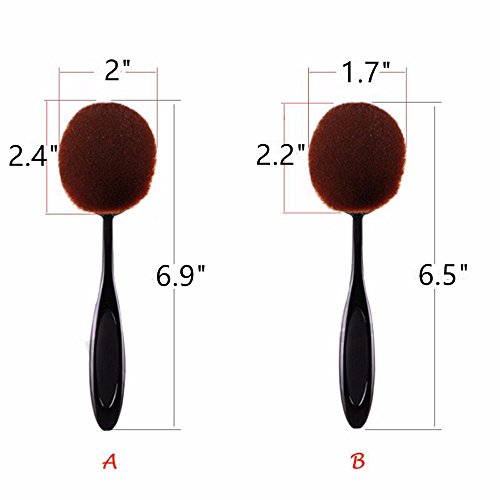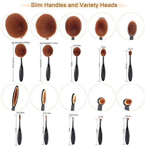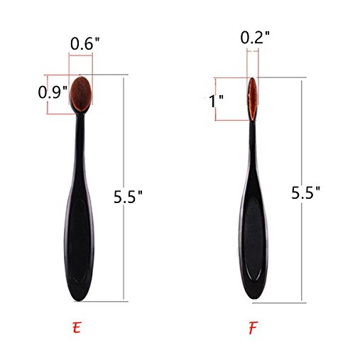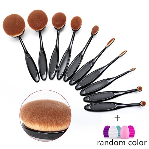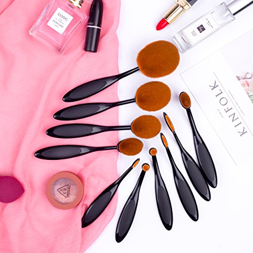 Angel Cosmetic 10 Pieces Soft Oval Toothbrush Makeup Brush Set Black Handles with Random Color Washing Egg