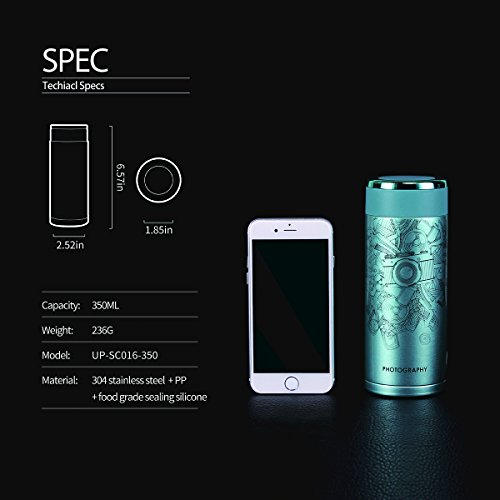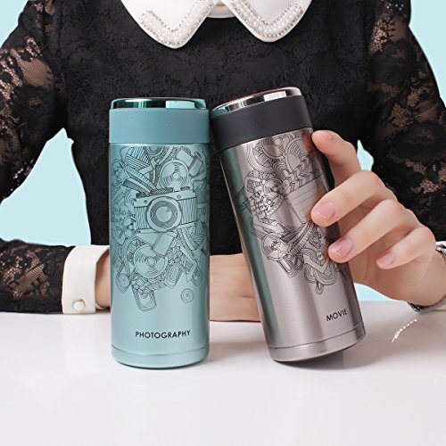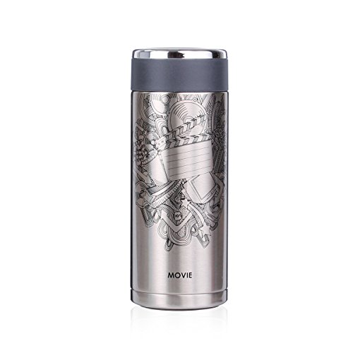 UPSTYLE Movie Pattern Stainless Steel Travel Mug Vacuum Insulated Mug Thermos Vacuum Bottle for Coffee, Tea Size 12oz (350ml), Gray