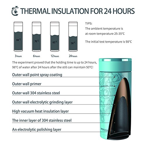 - The stainless steel interior and exterior is made of high quality food grade stainless steel, an electrolytic polishing layer, it's anti-corrosion and rust prevention. Used the vacuun-seal technology and double-wall construction,vacuum insulation for maximum temperature retention, high vacuum heat insulation layer, keeping drinks hot or cold for 24 hrs. It's not easy to rust, and easy to clean. 304 stainless steel is more environmental.