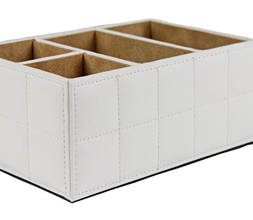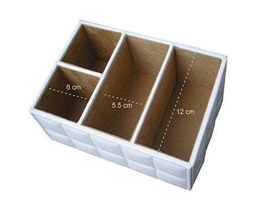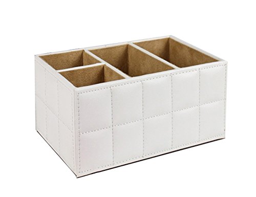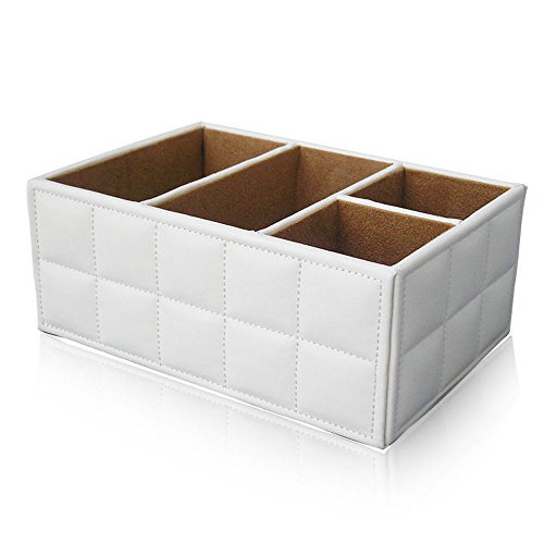Home Office PU Leather 4-slot Organizer Storage Box Holder for Remote Control/TV Guide/mail/CD Organizer/holder/Caddy/Case/Box (White)
