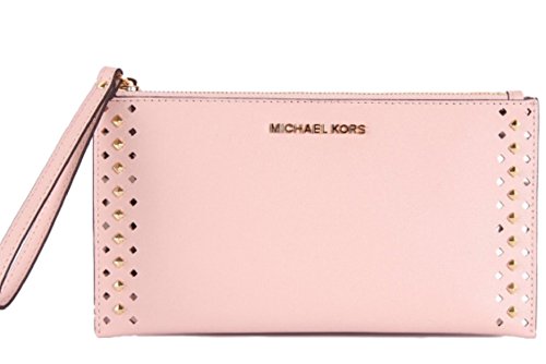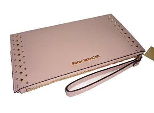 Michael Kors Studded Jet Set Travel Leather Clutch Wristlet Bag , Ballet