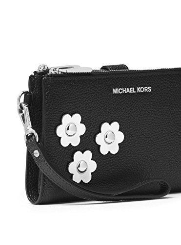 MICHAEL Michael Kors Adele Floral Appliqué Leather Smartphone Wristlet in Black