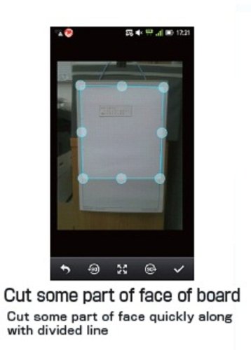 Easy digitalization of the conference minute or other descriptions on the white board with superb correction of trapezoid and color recognition! Digitalize whole face or divided face of board by use of ruled line or divided line on it. The scanned image can be transformed to JPG or PDF image. Sending the transformed image to e-mail or fax or up it in the cloud such as Evernote or Dropbox is possible. Before using the CamScanner series, download the CamScanner application to your smartphone through the "App Store" or "Google play" free of charge. The packaging is in Japanese.