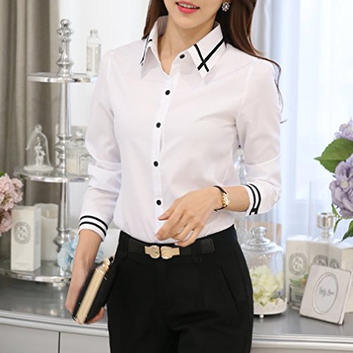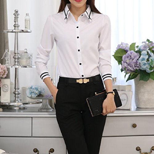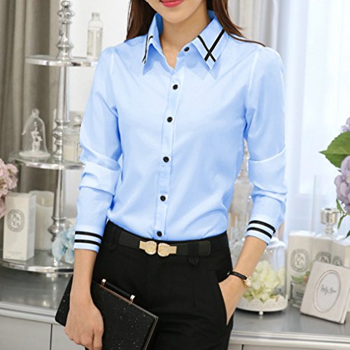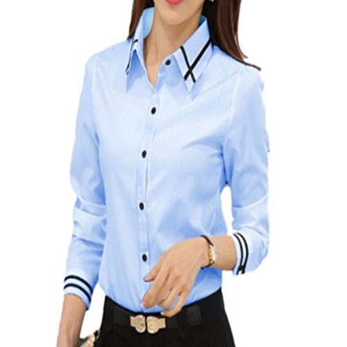 -. Title : 【 Big laugh 】 レディース シャツ トップス 長袖 ライン ブラウス オフィス シンプル 無地 きれいめ フォーマル ( L , ブルー )