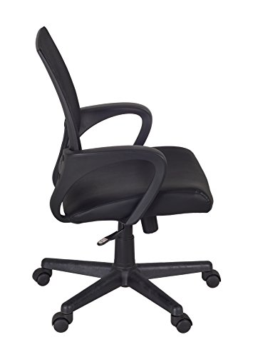 -. Feature : Bonded leather seat and mesh back / Stylish contoured back and armrests curve right around the user's body for a perfect fit / Supports up to 200lbs / Chair functions include: 360 degree swivel, pneumatic seat height, center tilt, tilt tension and tilt lock adjustments / Seat Height: 18-inches to 23-inches from floor, Seat Dimensions: 20-inches wide x 20-inches deep