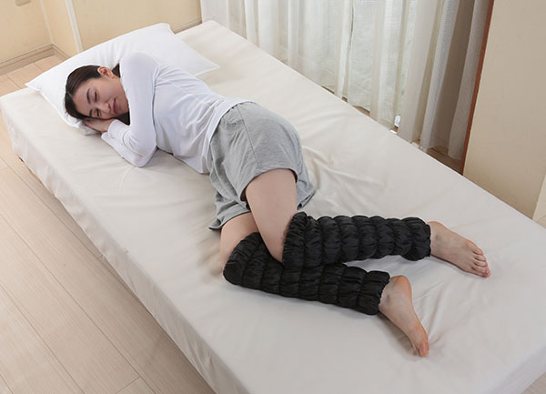 ●岩盤浴で使われている天然鉱石を練り込んだオーラ繊維が、足首からひざ下をじんわり心地よく温めます。