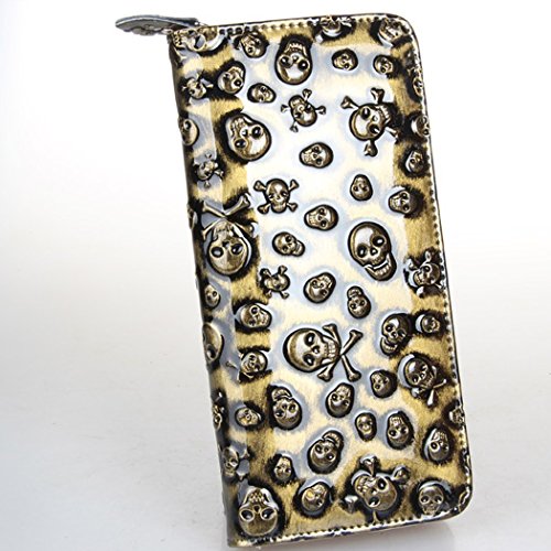 (Neal LINK(TM) by Snap Dragon(4))/Accessories/Wallets, Money Key Organizers/DIRECT FROM USA/Skull Zipper Long Design Women's Genuine Leather Wallet