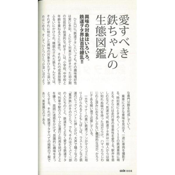 【商品説明】 定価(税込み):1,080円 値引き:10% OFF 推計100万人と言われる鉄道ファンの摩訶不思議な生態に迫るエピソード集。一般人には意味不明で共感できない「こだわり」や「行動原理・原則」など、鉄道ファンならではのエピソードを約200ヶ抜粋。鉄道ファンだけでなく、誰もが”ククッ”と笑えるイラストを添え、鉄道ファンの深層心理を解説します。 バーゲンブック 新品 特価 格安 趣味 鉄道 イラスト 心理 | |