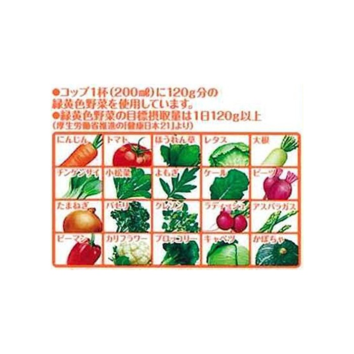 원재료:(당근)인삼즙,토마토 쥬스,사과 과즙,시금치즙,양상추즙,무우 엑기스,친 겐 코뿔소 엑기스,평지의 변종즙,읽 # 엑기스,K《루》즙,비츠즙,타마 파 엑기스,파슬리즙,《구레손》즙,래디시즙,아스파라거스즙,피망즙,콜리플라워즙,브로콜리즙,양배추즙,호박즙,신맛료,비타민C,향료,감미료(assessment《루후무》K,《스쿠라로스》)