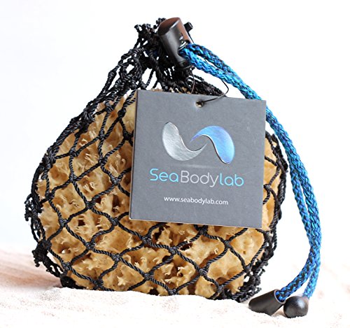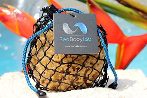 The Natural Sea Wool Bath Sponge is just the best of all natural sponges. Harvested in the Caribbean - A Natural Renewable Resource & an Authentic Experience in Softness and Luxury. Get them wet, and you´ll find they´re extremely soft and produce a rich & creamy lather. Sea sponges inhibit the growth of mold, mildew, and bacteria, making them toxin-free and hypo-allergenic, never getting that wet or moldy smell. Use with your favorite body wash every day. In a handmade, authentic fishing net from the Caribbean with a cinch cord in ocean blue.Feature