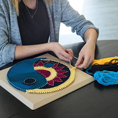 String Art Craft Kit – Unique Gift for Kids or Adults – Pre-Nailed 12”x12”x5/8” Wooden Base with Semi-Gloss Finish – Awakened Strength Yin Yang
