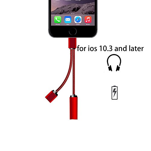 -. Title : Coopsion iPhone7 Earphone Charging and Audio Braided Adapter, Lightning to 3.5mm Braided Adapter for iPhone7 7Plus 6S 6Plus Support IOS 10.3 or Later (Red)