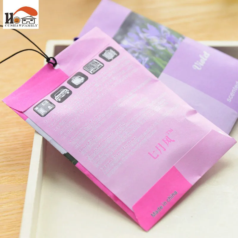 Package Material:Paper With Hanger or Not:No Model Number:YY004 Brand Name:CUSHAWFAMILY is_custermized:No Filling:Spice Size: :10.5 * 7.5 cm Material: :aromatherapy Packing: :opp bag + paper card Aroma: :rose, lily, jasmine, green tea, ocean, lavender