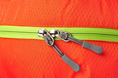 -. Feature : Size: 11" x 5.5" x 16.9", weight: 7oz / Packable: Folds it into a small bag to carry anywhere, unfolds it from pouch to backpack / Durable: Made of high-quality tear and water resistant nylon fabric with great strength / Comfortable: Ultra lightweight fabric and adjustable breathable straps make it easy to carry / Four bright colors for option: Orange, pink, purple and red, make it easy to be found anywhere