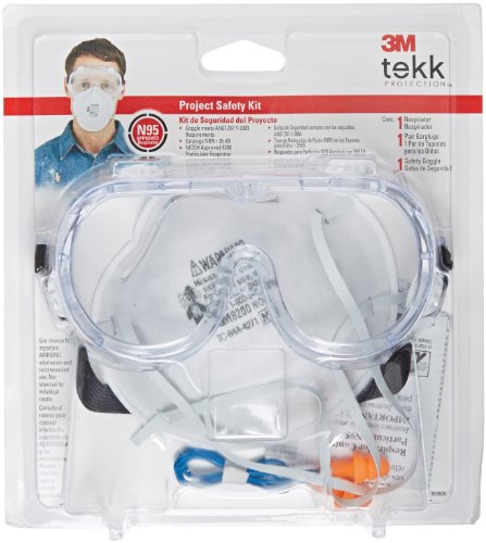 -. Feature : 3M 8200 Sanding and Fiberglass Respirator is used for non-harmful dusts from sanding, grinding, sawing and insulating particles, N95 approved / 3M Chemical Splash/Impact Goggles help protect eyes from certain airborne particulates and chemical splash, meets ANSI Z87.1-2003 requirements / 3M Corded Reusable Earplugs feature a comfortable triple-flange design and cord to help reduce the chance of loss, NRR 25 dB / High-quality components and materials / Kit contains 1-respirator, 1-pair earplugs and 1-safety goggle/pack / Covers Eye Hearing & Respiratory Protection / Safety Kit Value Protection / Includes A Chemical Splash/Impact Goggle