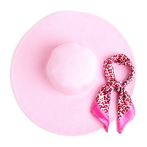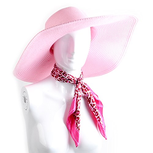 Pink floppy hat with pink cheetah printed design neckerchief women’s head scarf set