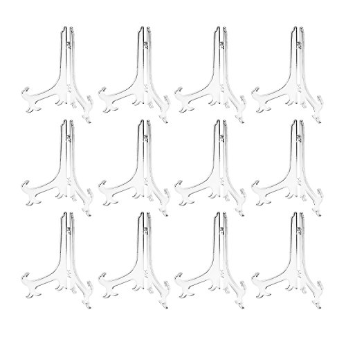 - Features folding hinges so it lays flat with adjustable width for many options. Display stand measures 8.5" inches tall. Comes in a 12 package of these transparent folding easel display stands.
