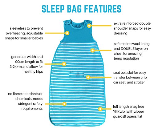 - Sleeveless design reduces the risk of overheating and being smothered by blankets (SIDS risk factors)