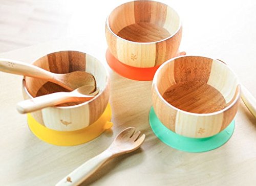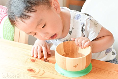 LaBoos Baby Kids Suction Bowl Spoon Fork, Infant Feeding , Baby Registry, Bamboo Bowl , Unisex. Baby Bowl Set + Baby Spoons Set. FDA Approved BPA Free, Stay Put Suction bowl ,Green