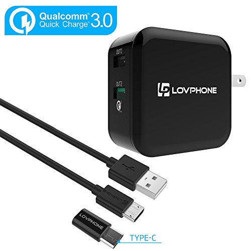 -. Title : Wall Charger Adapter Set / Travel Charger Quick Charge 3.0 Fast Charge - LOVPHONE 2-Port Dual USB Travel Charger Adapter[Quick Charge 2.0 Compatible]-Black Set with Micro USB Cable and Type-C adapter