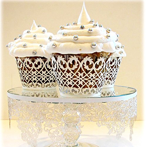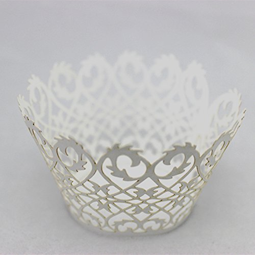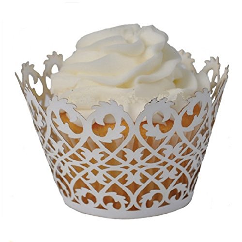Resmy® Pack of 24 White Filigree Lace Cupcake Wrappers Wraps Liners Wedding Birthday Party Christening Baby Shower Party Cake Decoartion